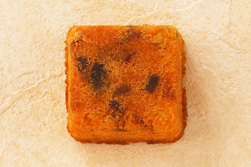 小麦粉(国内製造)、マーガリン、レーズン洋酒漬、砂糖、ショートニング、液全卵、水飴混合異性化液糖、アーモンドパウダー(アーモンド、コーンスターチ)、牛乳、加糖練乳、脱脂粉乳、液卵黄、リキュール、蜂蜜、食塩、パプリカパウダー/酒精、乳化剤、香料、pH調整剤、着色料(カロテン)、(一部に小麦・乳成分・卵・大豆・アーモンドを含む))